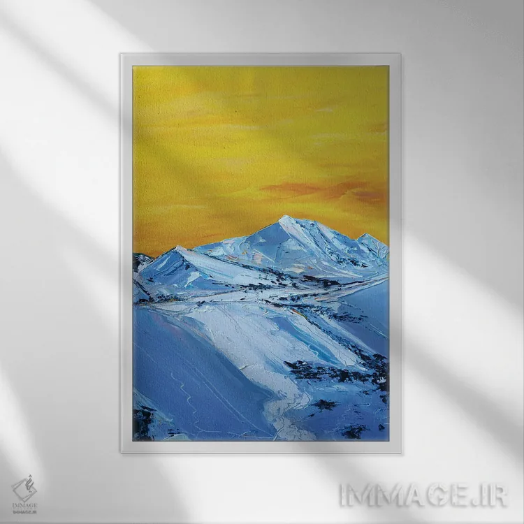 براساس پالت ترکیبی اثر، قاب تیک گرم (چوبی) پیشنهاد اول است و مشکی مات (فریم متوسط) مکمل. برای سفارشهای پروژهای با ابعاد و قابهای اختصاصی با ایماژ در تماس باشید.