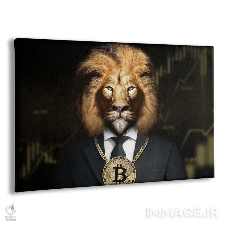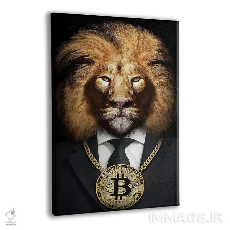 تابلو شیر با بیت‌کوین طلایی دور گردن اثر آدریان ویریو - نمای پرسپکتیو محصول