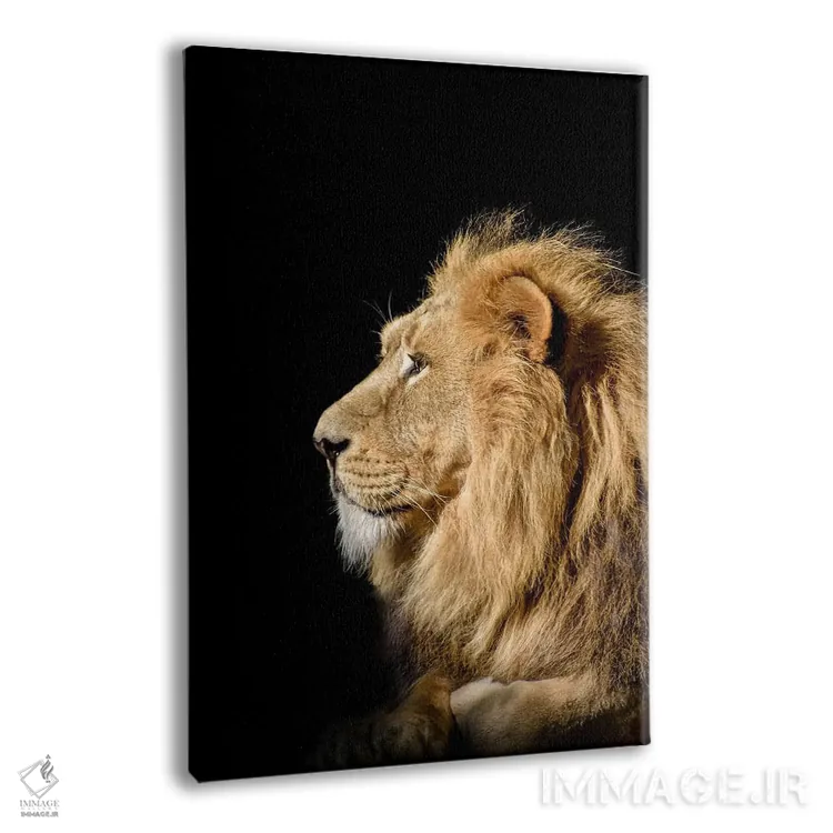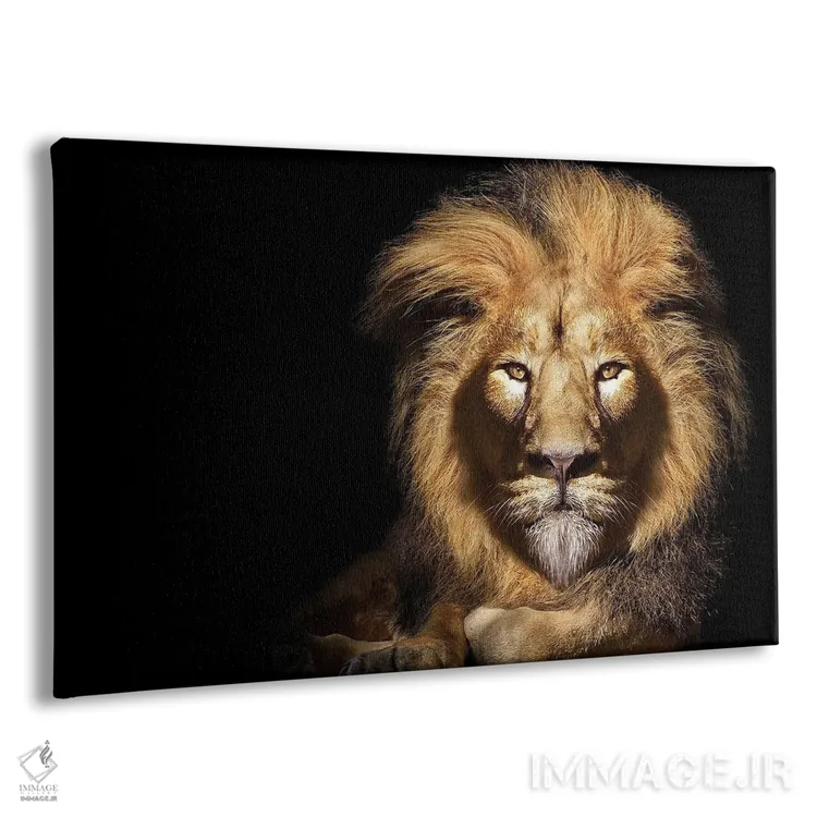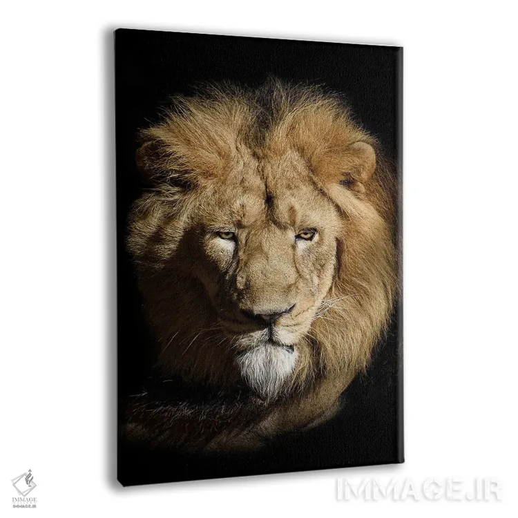 تابلو پرتره شیر نر آفریقایی روی پس‌زمینه سیاه اثر آدریان ویریو - نمای پرسپکتیو محصول