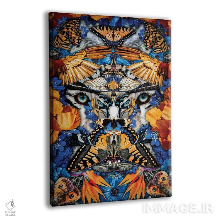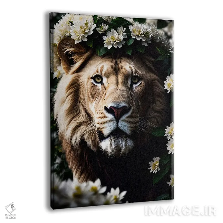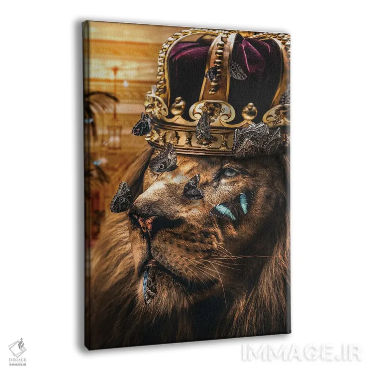 تابلو شیر پادشاه با تاج طلایی و پروانه‌ها اثر آدریان ویریو - نمای پرسپکتیو محصول