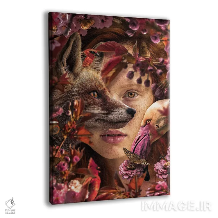 تابلو زن در میان گل‌ها با روباه اثر آدریان ویریو - نمای پرسپکتیو محصول