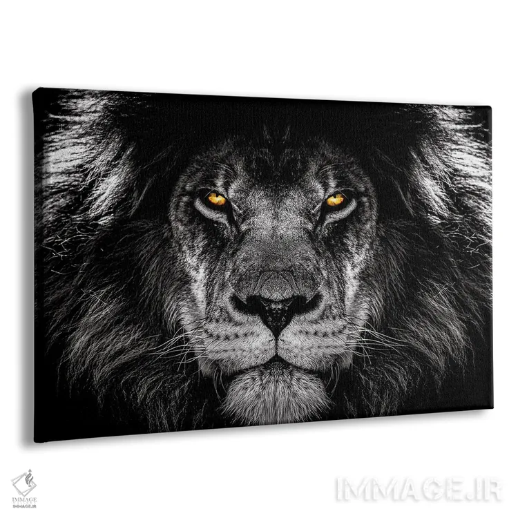 تابلو پرتره شیر به صورت جدا روی پس‌زمینه سیاه اثر آدریان ویریو - نمای پرسپکتیو محصول