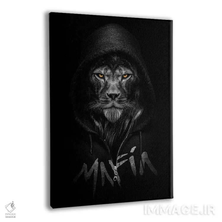 تابلو شیر با سویشرت کلاه‌دار نوشته "مافیا" اثر آدریان ویریو - نمای پرسپکتیو محصول