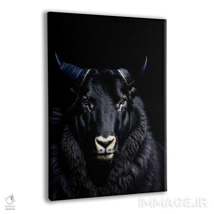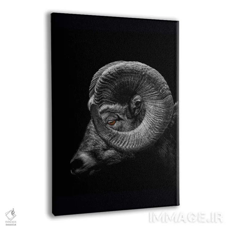 تابلو قوچ با شاخ‌های بزرگ روی پس‌زمینه سیاه اثر آدریان ویریو - نمای پرسپکتیو محصول