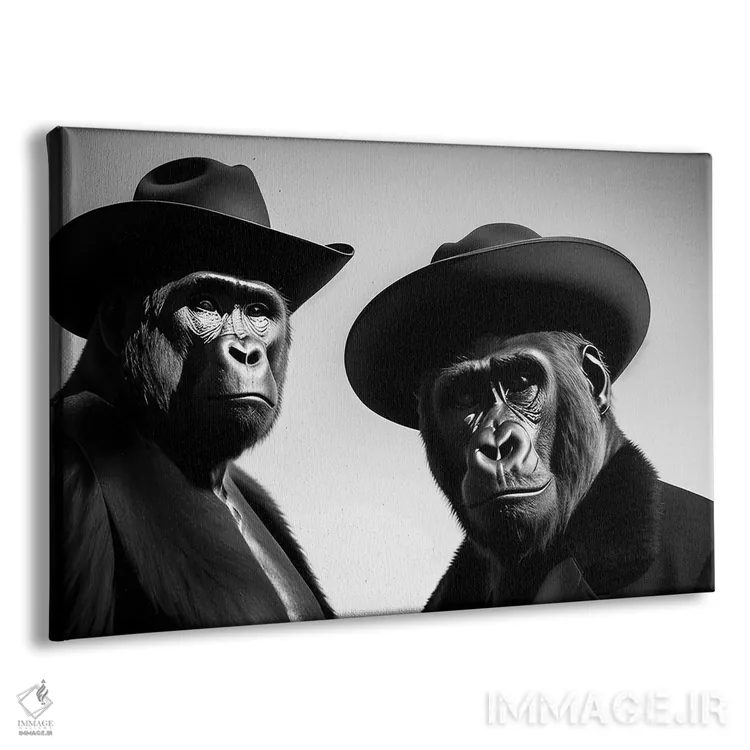 تابلو Black And White IV,گروهی از گوریل‌ها با کلاه و لباس شیک، سیاه‌وسفید اثر آدریان ویریو - نمای پرسپکتیو محصول