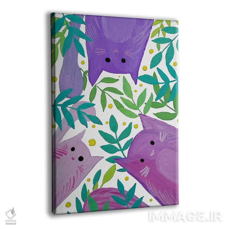 تابلو دکوراتیو گربه های بنفش میان شاخه ها اثر آنجلا مینکا