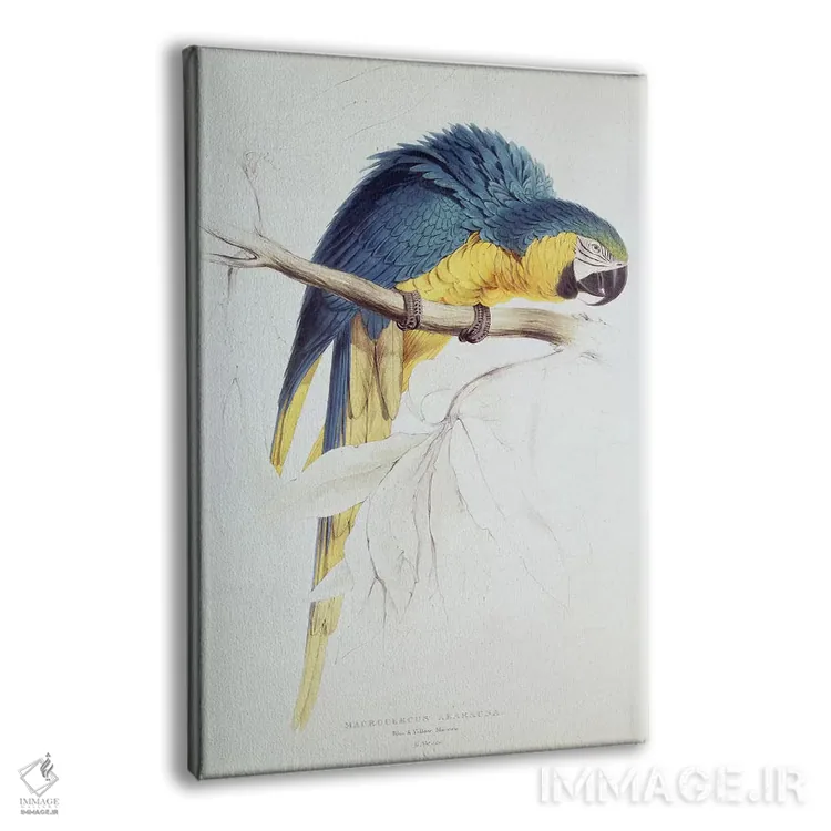 تابلو طوطی ماکائوی آبی و زرد اثر ادوارد لیر (شاعر و تصویرگر انگلیسی) - نمای پرسپکتیو محصول