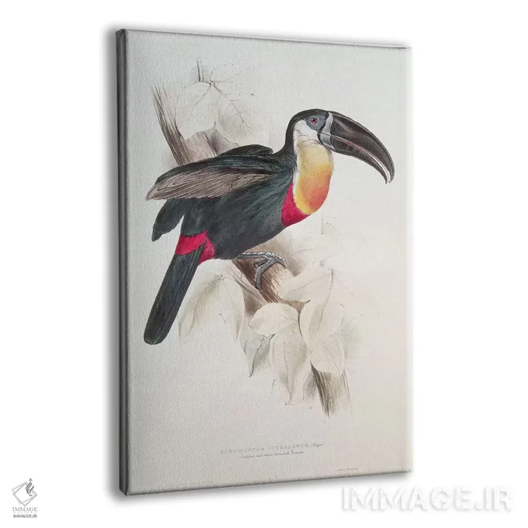 تابلو توکان سینه‌سفید و گوگردی، قرن نوزدهم اثر ادوارد لیر (شاعر و تصویرگر انگلیسی) - نمای پرسپکتیو محصول