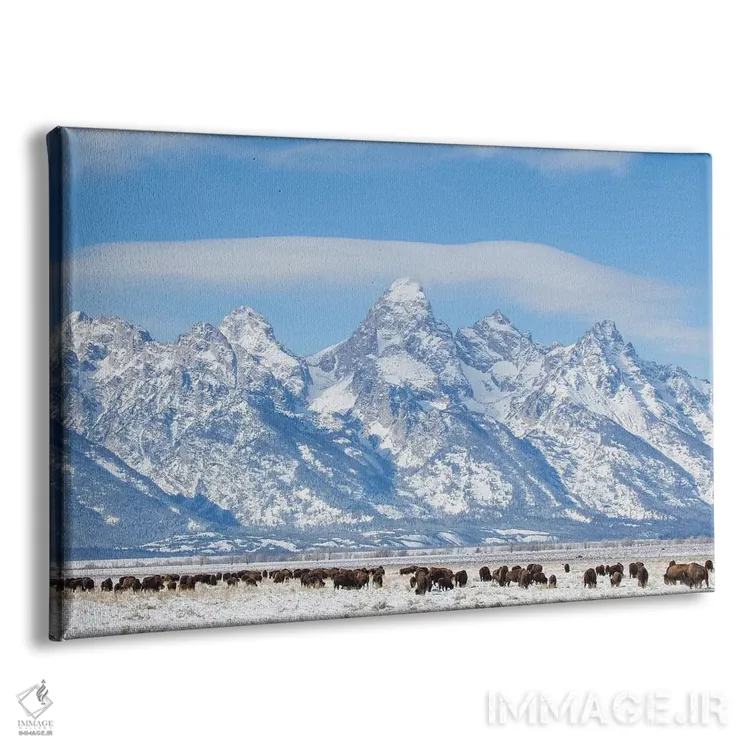 تابلو آمریکا، وایومینگ، پارک ملی گرند تتون، گله بوفالو در حال چرا در زمستان اثر الیزابت بوم