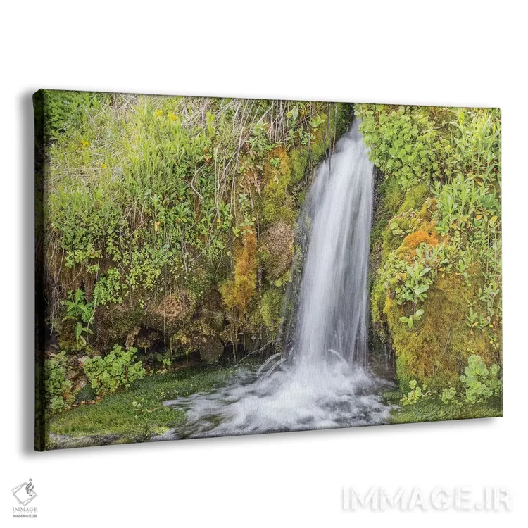 تابلو آمریکا، وایومینگ، شهرستان سابلت، کِندال وُرم اسپرینگز، آبشار کوچکی که روی لبه‌ای خزه‌ای جاری است اثر الیزابت بوم