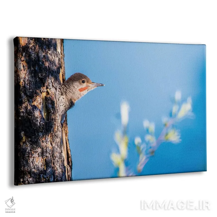 تابلو وایومینگ، شهرستان سابلت. نر جوان فلیکر شمالی از حفرهٔ لانه‌اش سرک می‌کشد اثر الیزابت بوم - نمای پرسپکتیو محصول