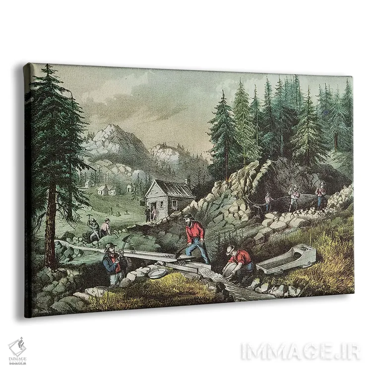 تابلو استخراج طلا در کالیفرنیا، ۱۸۷۱ اثر ان. کریر (نقاش/آرشیویست)