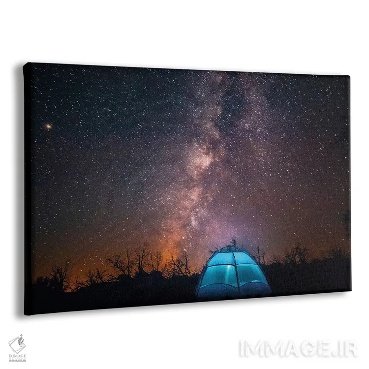 تابلو آمریکا، کالیفرنیا، صحرای موهاوی. چادری نورانی در زیر آسمان پرستاره و کهکشان راه شیری. اثر برایس مریل
