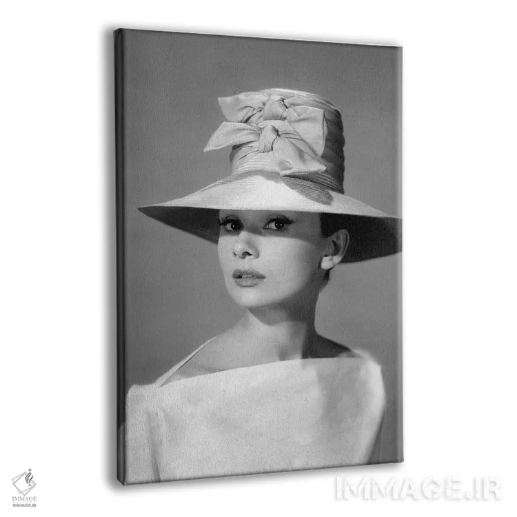 تابلو دکوراتیو آدری هپبورن با کلاهی بلند و دو پاپیون اثر رادیو دیز - نمای پرسپکتیو محصول