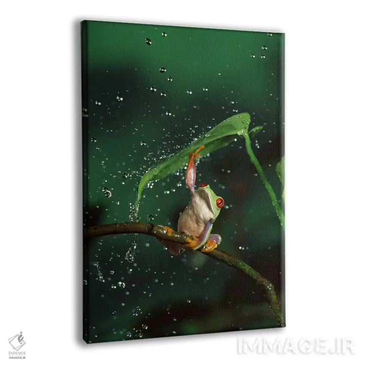 تابلو دکوراتیو قورباغه درختی با چشم قرمز در باران اثر مایکل دورهام