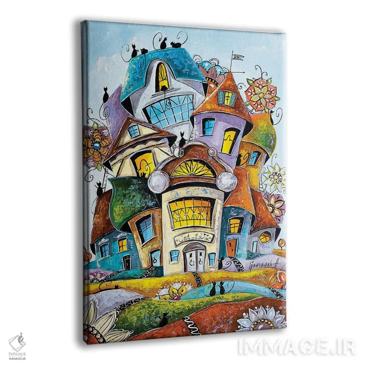 تابلو دکوراتیو شادترین شهر گربه ها اثر ناتالیا گرینچنکو - نمای پرسپکتیو محصول