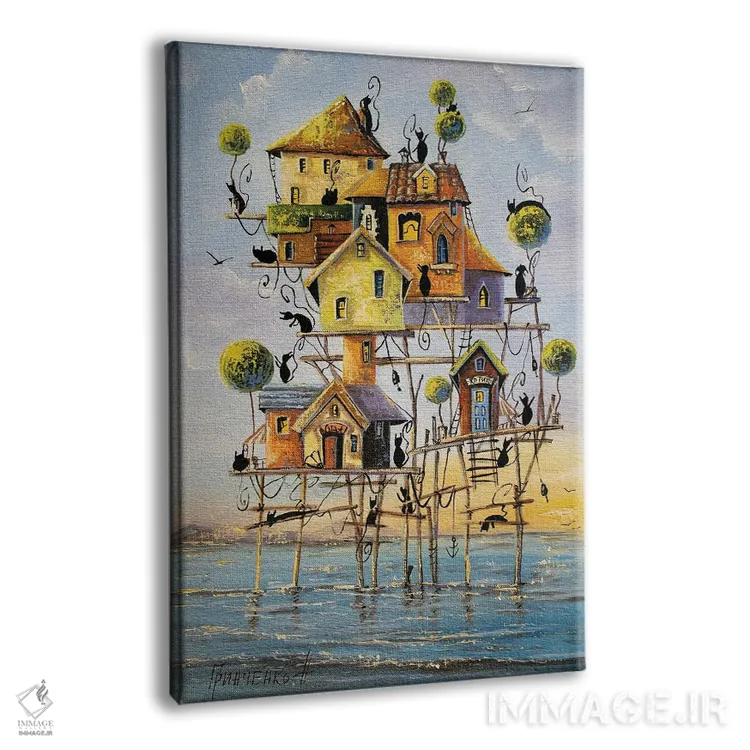 تابلو دکوراتیو شهر گربه های ماهیگیر اثر ناتالیا گرینچنکو - نمای پرسپکتیو محصول