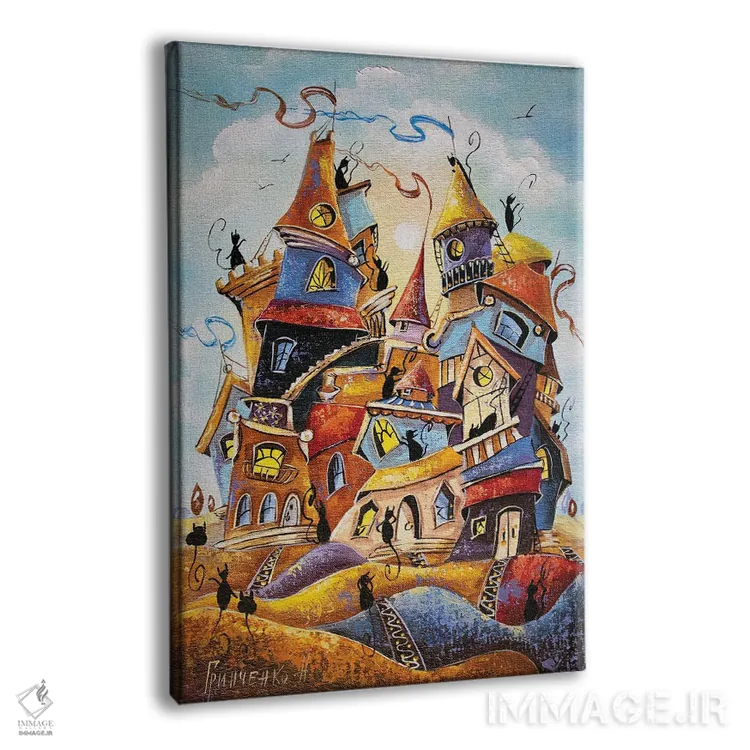 تابلو دکوراتیو شهر گربه ها در ابرها اثر ناتالیا گرینچنکو - نمای پرسپکتیو محصول