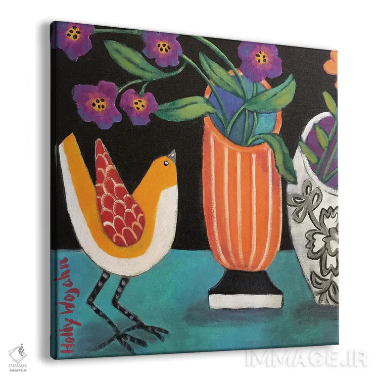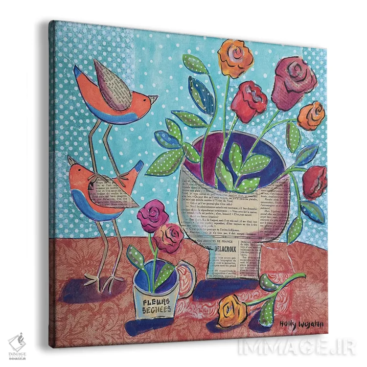 تابلو دکوراتیو دو گلدان شاد دیگر و جیک جیک اضافه اثر هالی وجاهن