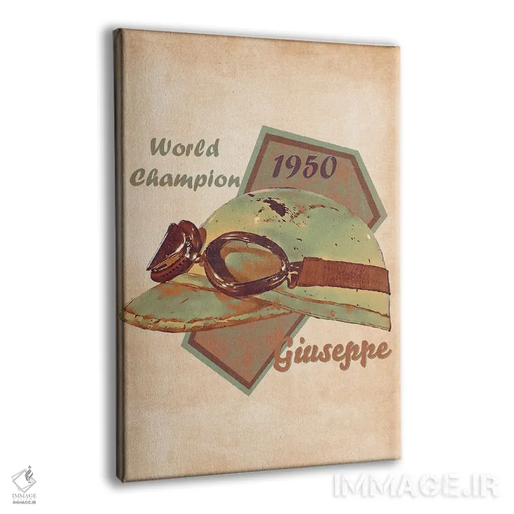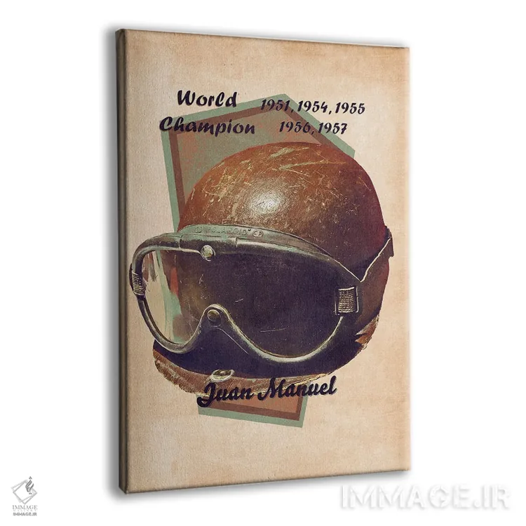 تابلو دکوراتیو کلاه ایمنی رتو خوان مانوئل فانجیو اثر پاپ کالت پوسترز - نمای پرسپکتیو محصول