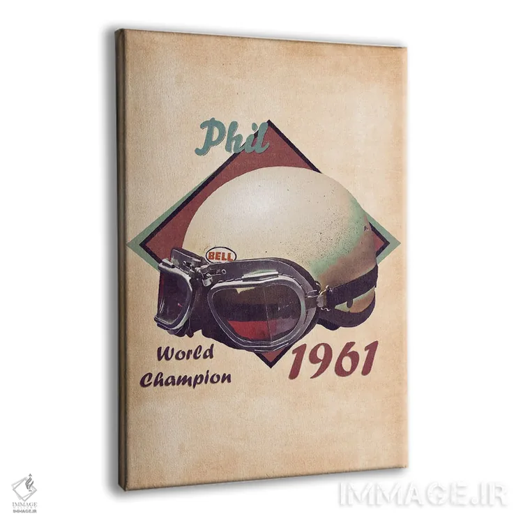 تابلو دکوراتیو کلاه ایمنی قدیمی نیکو روزبرگ اثر پاپ کالت پوسترز - نمای پرسپکتیو محصول