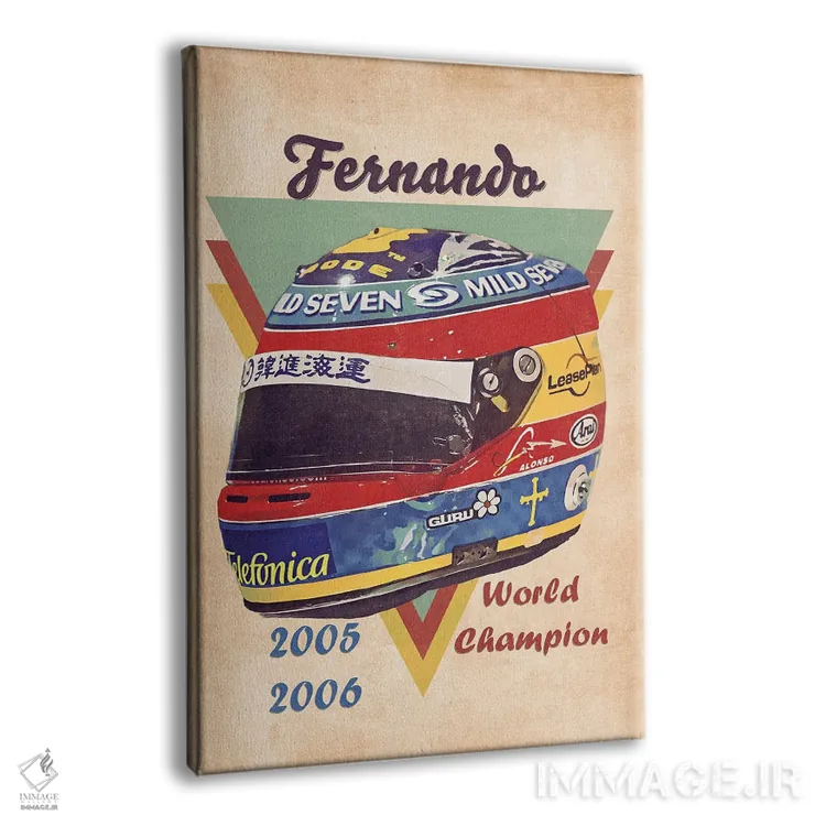 تابلو دکوراتیو کلاه ایمنی قدیمی فرناندو آلونسو اثر پاپ کالت پوسترز