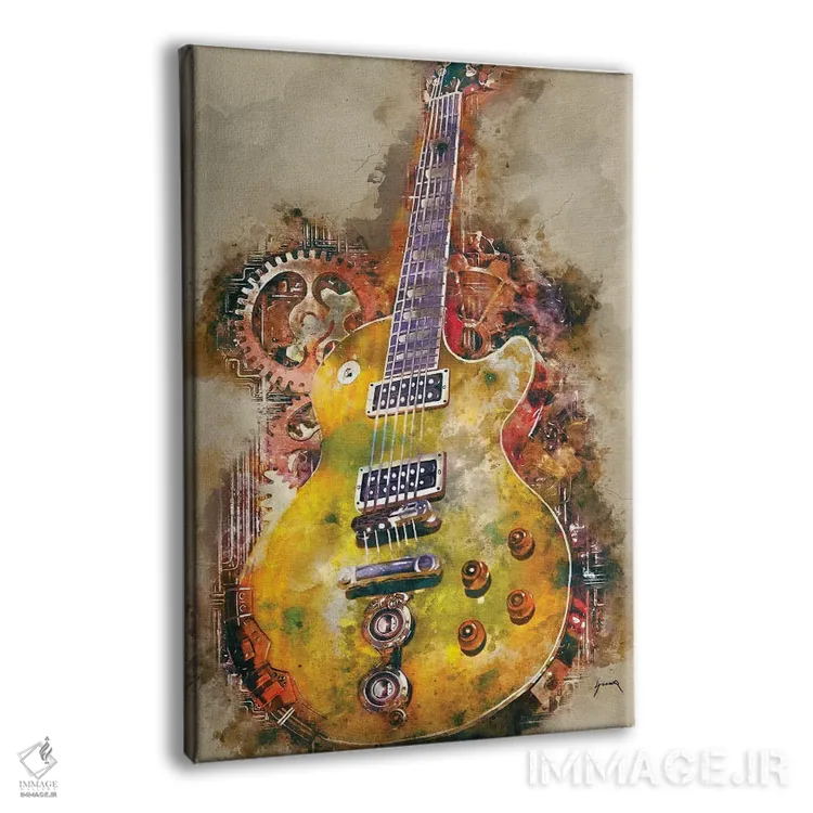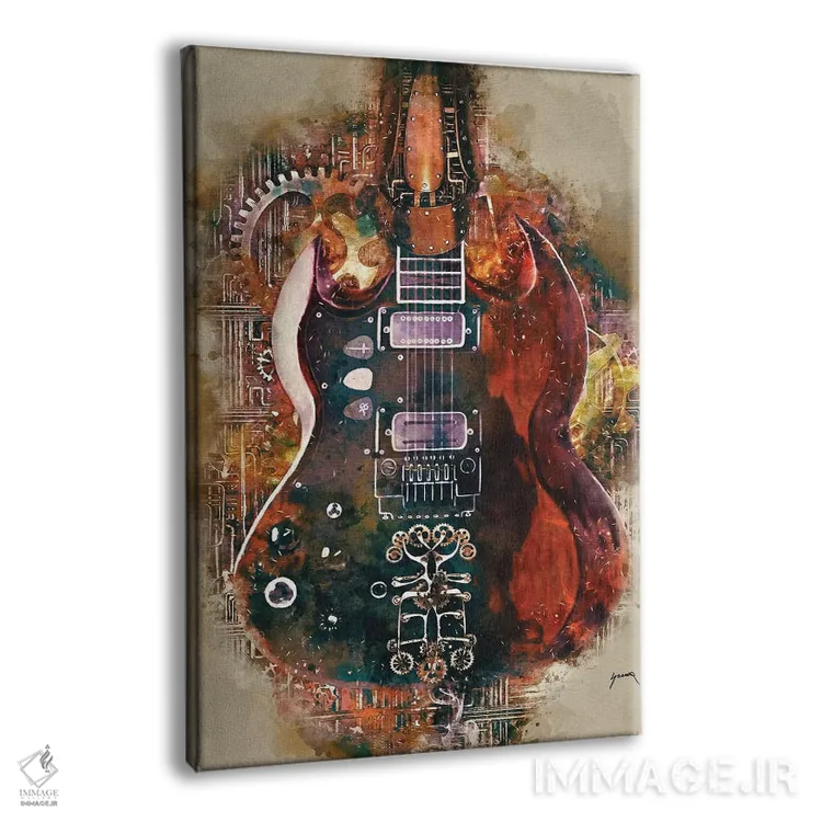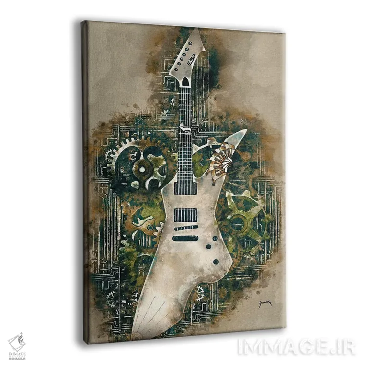 تابلو دکوراتیو گیتار استیم پانک تونی ایومنی اثر پاپ کالت پوسترز - نمای پرسپکتیو محصول