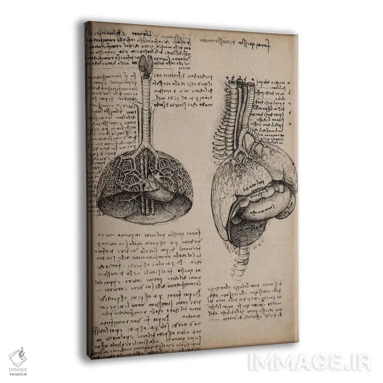 تابلو مطالعات اعضای بدن انسان در دفتر طراحی اثر لئوناردو داوینچی (نقاش و مخترع ایتالیایی)