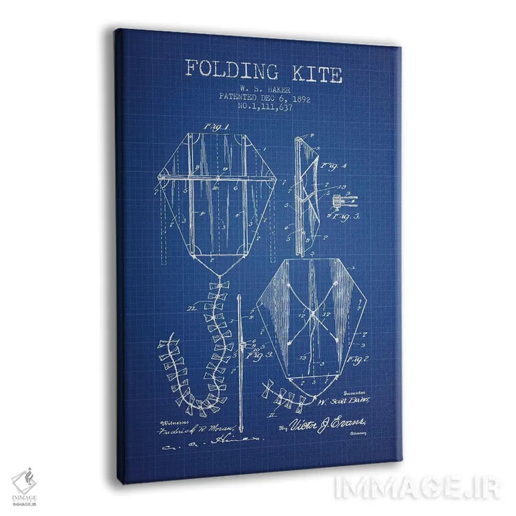 تابلو طرح ثبت اختراع بادبادک تاشو، اثر W.S. Baker (آبی نفتی) اثر پیکسل کهنه (استودیو/نام هنری) - نمای پرسپکتیو محصول
