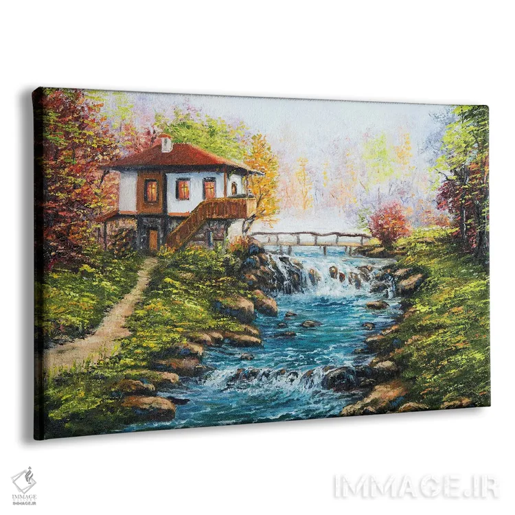 تابلو خانه سنتی بلغاری و رودخانهای در کوهستان اثر بوروجُینت