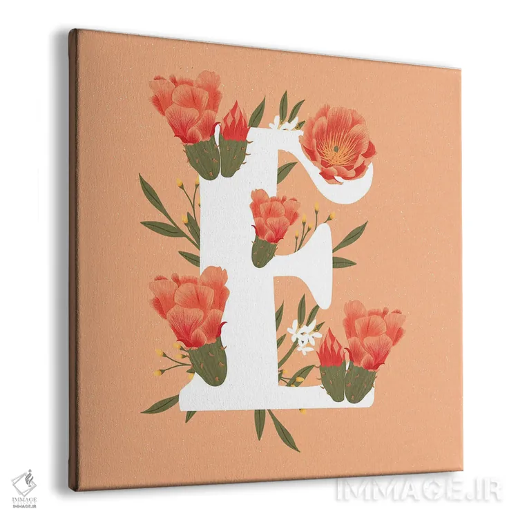تابلو دکوراتیو حرف E با گل های آبرنگی اثر پیج ترنر
