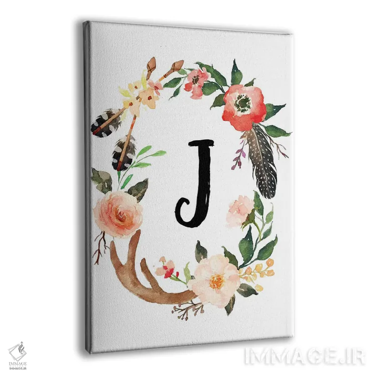 تابلو دکوراتیو حرف J با گل های آبرنگی اثر پیج ترنر