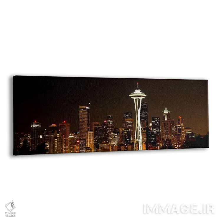تابلو منظرهٔ گستردهٔ آسماننمای سیاتل (شب) اثر هنرمند ناشناس