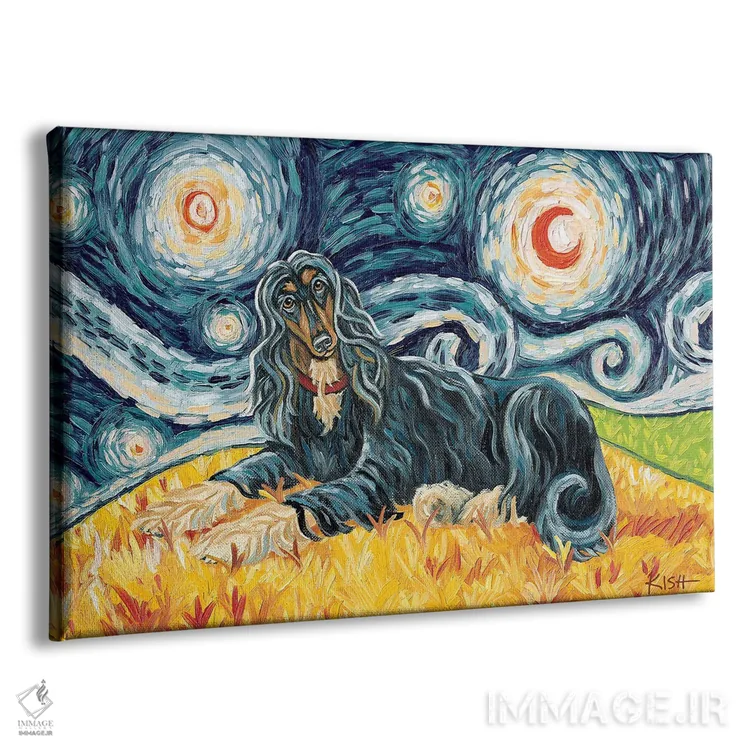 تابلو دکوراتیو سگ افغان در یک شب پرستاره روشن اثر گرچن کیش سرانو