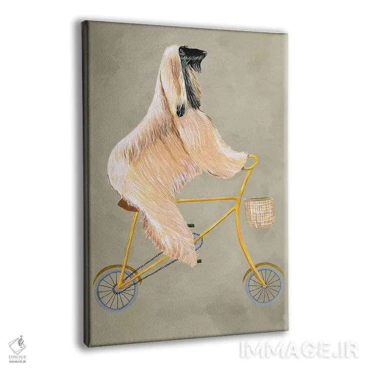 تابلو دکوراتیو سگ افغان روی دوچرخه اثر کوکو د پاریس