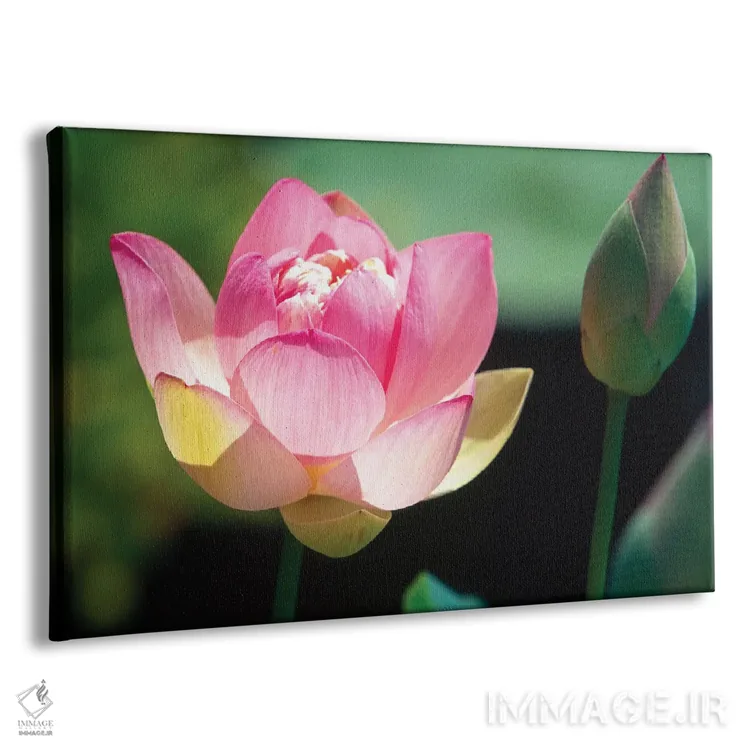 تابلو دکوراتیو نمای نزدیک از گل و غنچه نیلوفر صورتی اثر جورج اوزه - نمای پرسپکتیو محصول
