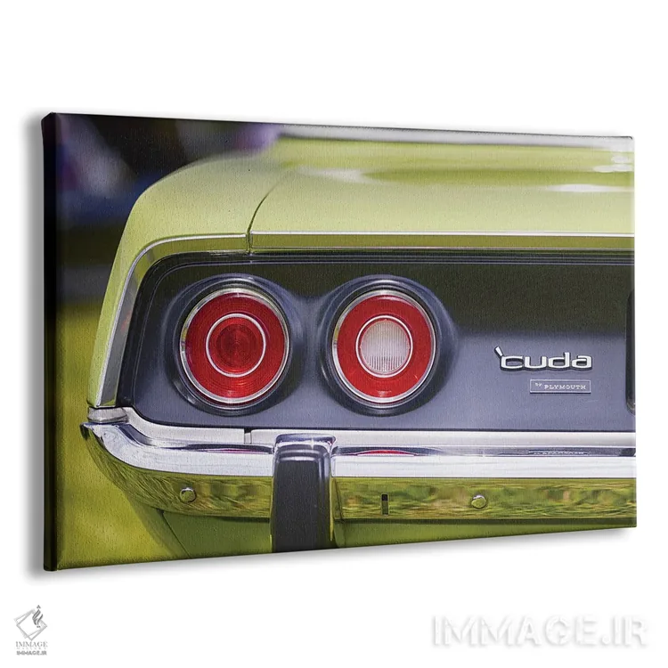 تابلو دکوراتیو چراغ های عقب گرد و سپر براق کروم خودروی پیلیموث باراکودا ۱۹۷۱… اثر جورج اوزه - نمای پرسپکتیو محصول