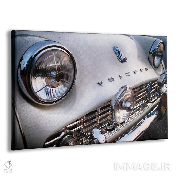 تابلو دکوراتیو نمای نزدیک از جلو خودروی اسپرت بریتانیایی کلاسیک ترایومف TR3… اثر جورج اوزه
