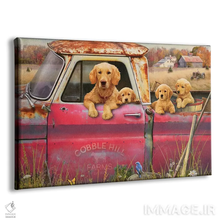تابلو دکوراتیو گلدن رتریورها و کامیون اثر گرگ جوردانو - نمای پرسپکتیو محصول