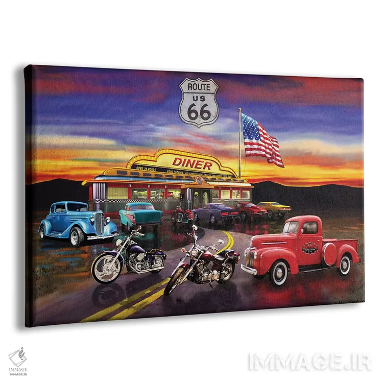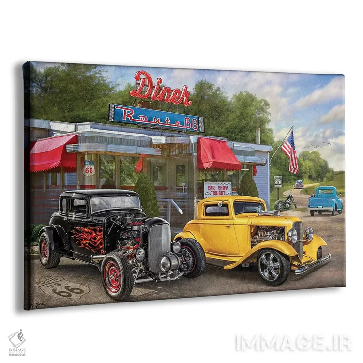 تابلو دکوراتیو کافه و ماشین های نوستالژیک آمریکایی اثر گرگ جوردانو - نمای پرسپکتیو محصول