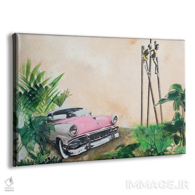 تابلو دکوراتیو تعطیلات با ماشین صورتی ۲ اثر هانک پره بوم