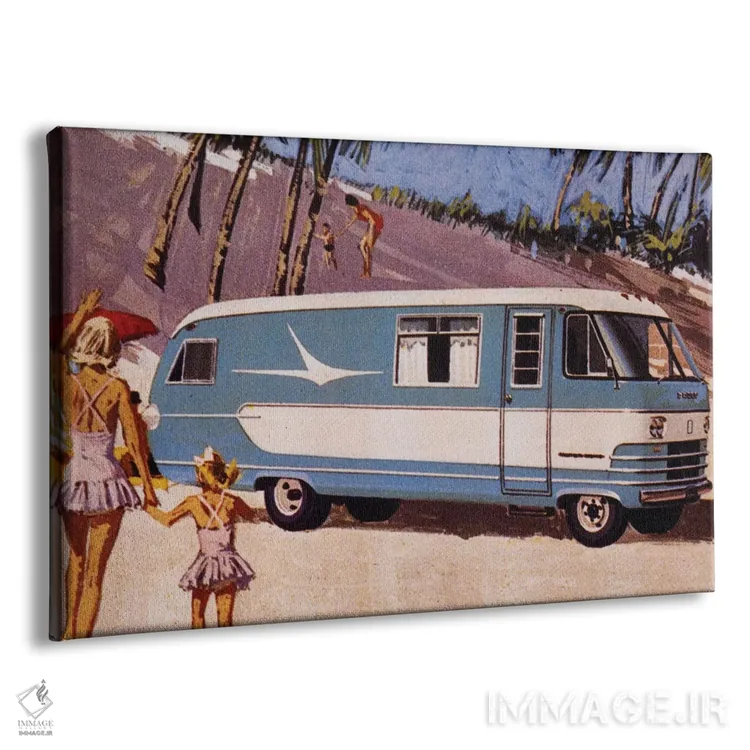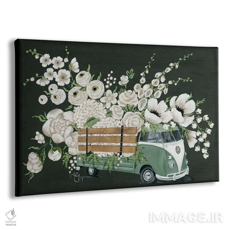 تابلو دکوراتیو اتوبوس فولکس واگن سفید اثر هولی هکس آرت