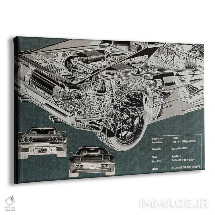 تابلو دکوراتیو نقشه فنی اشعه ایکس موتور خودرو کانورتیبل اثر فایو بای فایو کالکتیو - نمای پرسپکتیو محصول