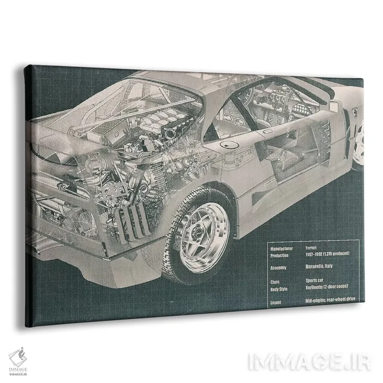 تابلو دکوراتیو نقشه فنی اشعه ایکس موتور و داخل خودرو اثر فایو بای فایو کالکتیو - نمای پرسپکتیو محصول