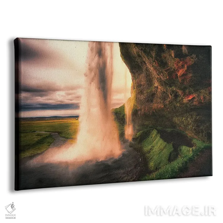 تابلو دکوراتیو دید آبشار سلجالاندسفوس از داخل غار در هنگام غروب، ایسلند اثر جورج اوزه