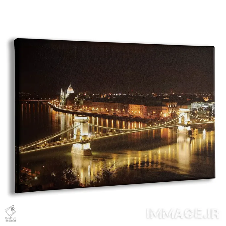 تابلو دکوراتیو منظره شبانه بوداپست با پل زنجیر و ساختمان پارلمان اثر جورج اوزه - نمای پرسپکتیو محصول