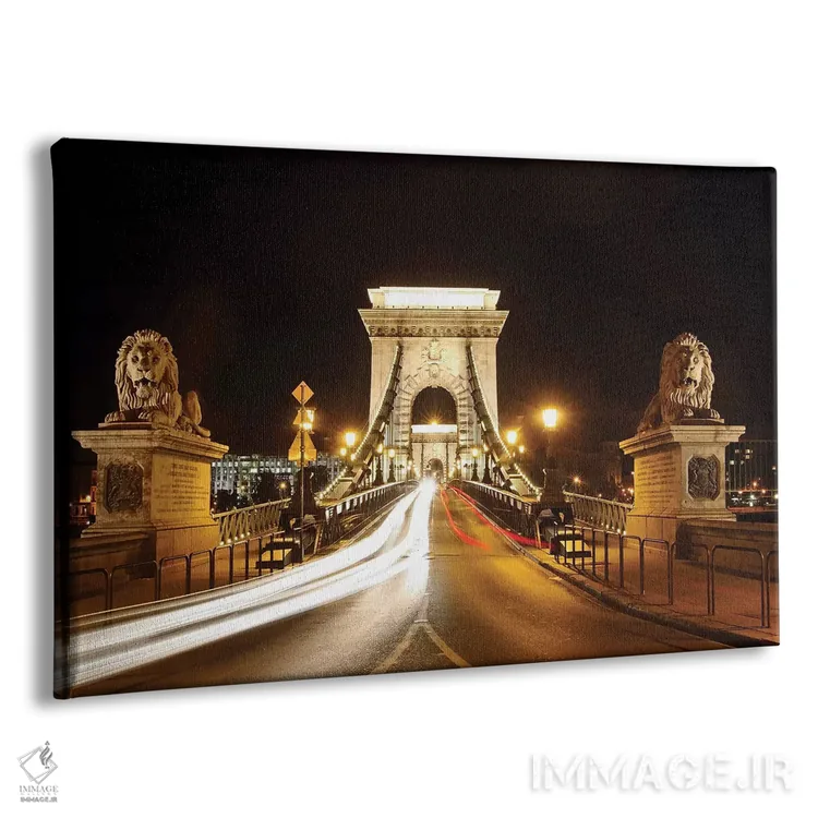 تابلو دکوراتیو مجسمه های شیر پل زنجیر در شب، بوداپست، مجارستان اثر جورج اوزه