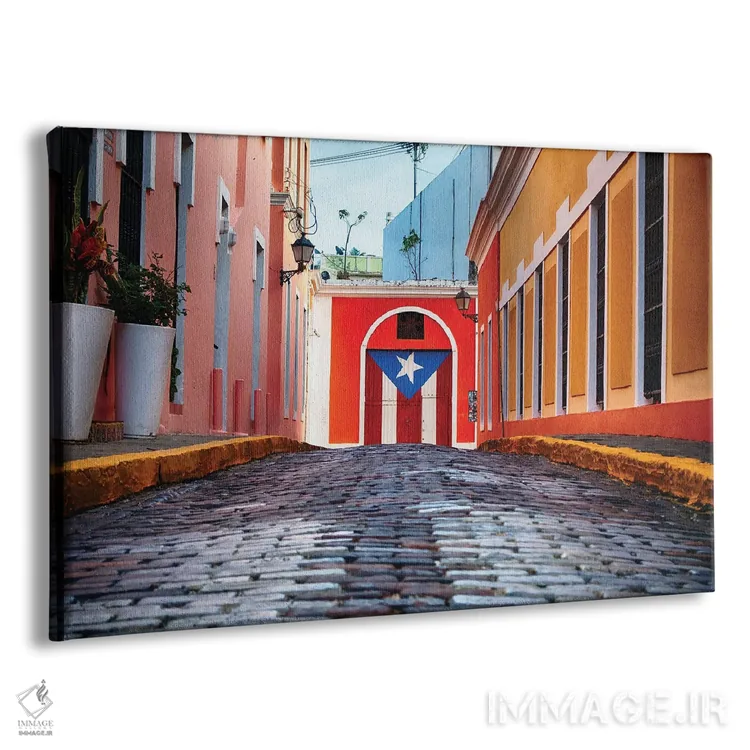 تابلو دکوراتیو خیابان سنگفرش شده در سن خوان قدیمی، پورتوریکو اثر جورج اوزه - نمای پرسپکتیو محصول