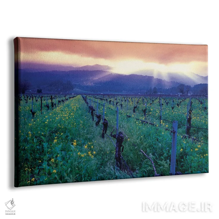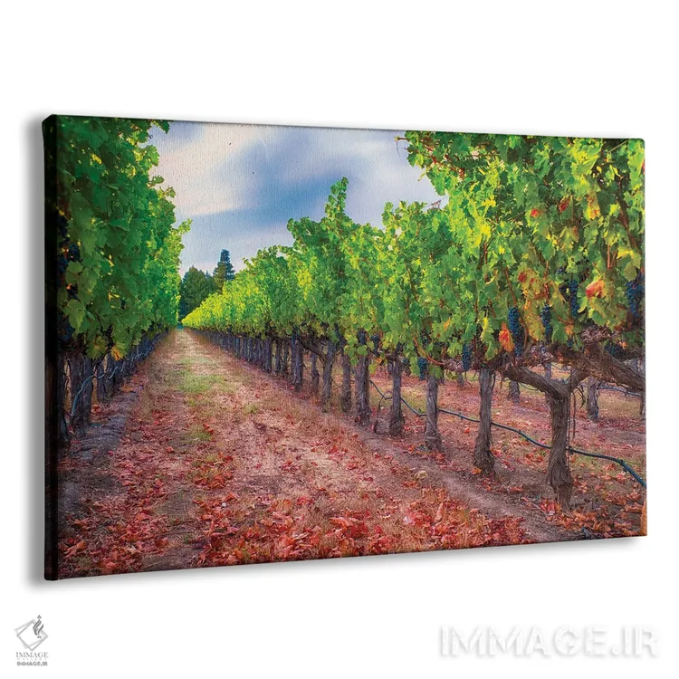 تابلو دکوراتیو ردیف تاکستان با خوشه های انگور آبی رسیده، دره ناپا، کالیفرنیا اثر جورج اوزه