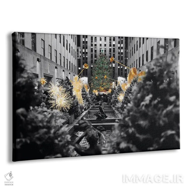 تابلو دکوراتیو درخت کریسمس با مجسمه فرشته شیپورزن در مرکز راکفلر، نیویورک اثر جورج اوزه - نمای پرسپکتیو محصول